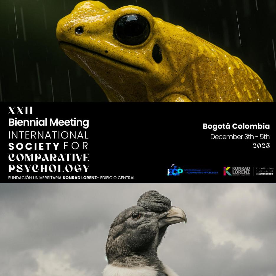 We are pleased to accept submissions for the upcoming XXII Biennial Meeting of the International Society for Comparative Psychology (ISCP), which will take place from December 3rd to 5th, 2025, at Fundación Universitaria Konrad Lorenz, in Bogotá, Colombia.